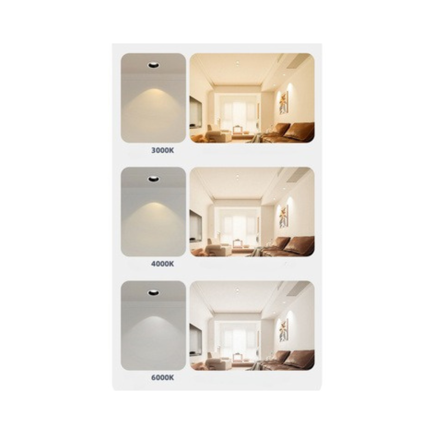 • Có đủ các tông màu ánh sáng: 3000K, 4000K, 6000K, 3 chế độ màu