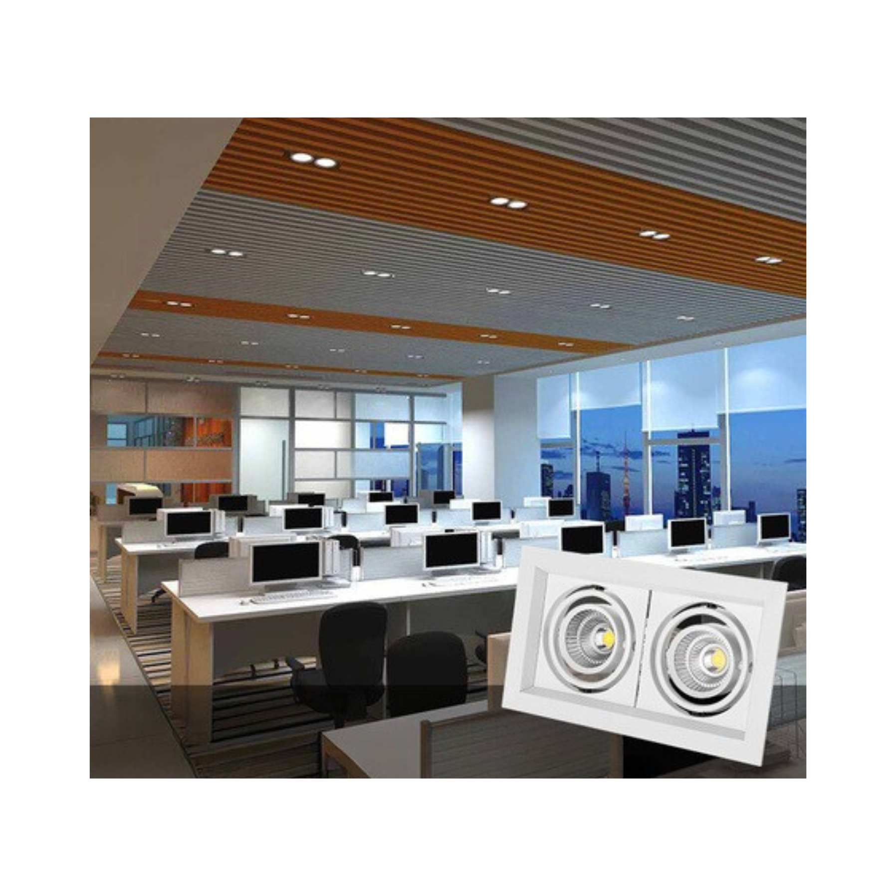 • Kiểu dáng tinh tế, hiện đại, viền mặt mỏng ôm sát trần